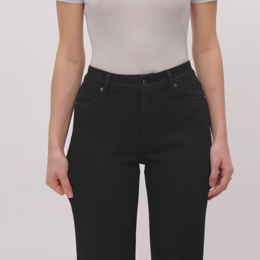 Experience the classic look of denim with the comfort of incredible stretch. Our high-waisted, straight-leg jeans are crafted from a proprietary denim blend that’s both very stretchy and thick, providing the feel of traditional denim with added flexibility. Versatile and perfect for everyday wear, these jeans are a must-have in your capsule wardrobe.