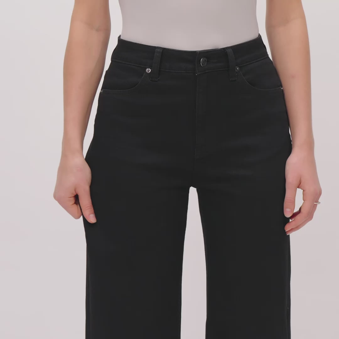 Experience the classic look of denim with the comfort of incredible stretch. Our high-waisted, relaxed wide-leg jeans are crafted from a proprietary denim blend that’s both very stretchy and thick, providing the feel of traditional denim with added flexibility. Versatile and perfect for everyday wear, these jeans are a must-have in your capsule wardrobe.