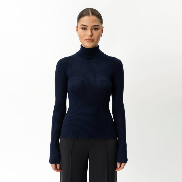 Merino Wool Ribbed Turtleneck