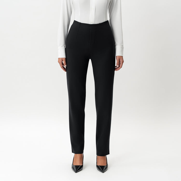 Discover the perfect blend of style and comfort with our tailor-inspired slim trousers that are ideal for work and leisure. Featuring an invisible waistband and refined dart details, these trousers are crafted from a luxurious double-knit fabric that is both heavy and soft, with a touch of stretch for all-day comfort.